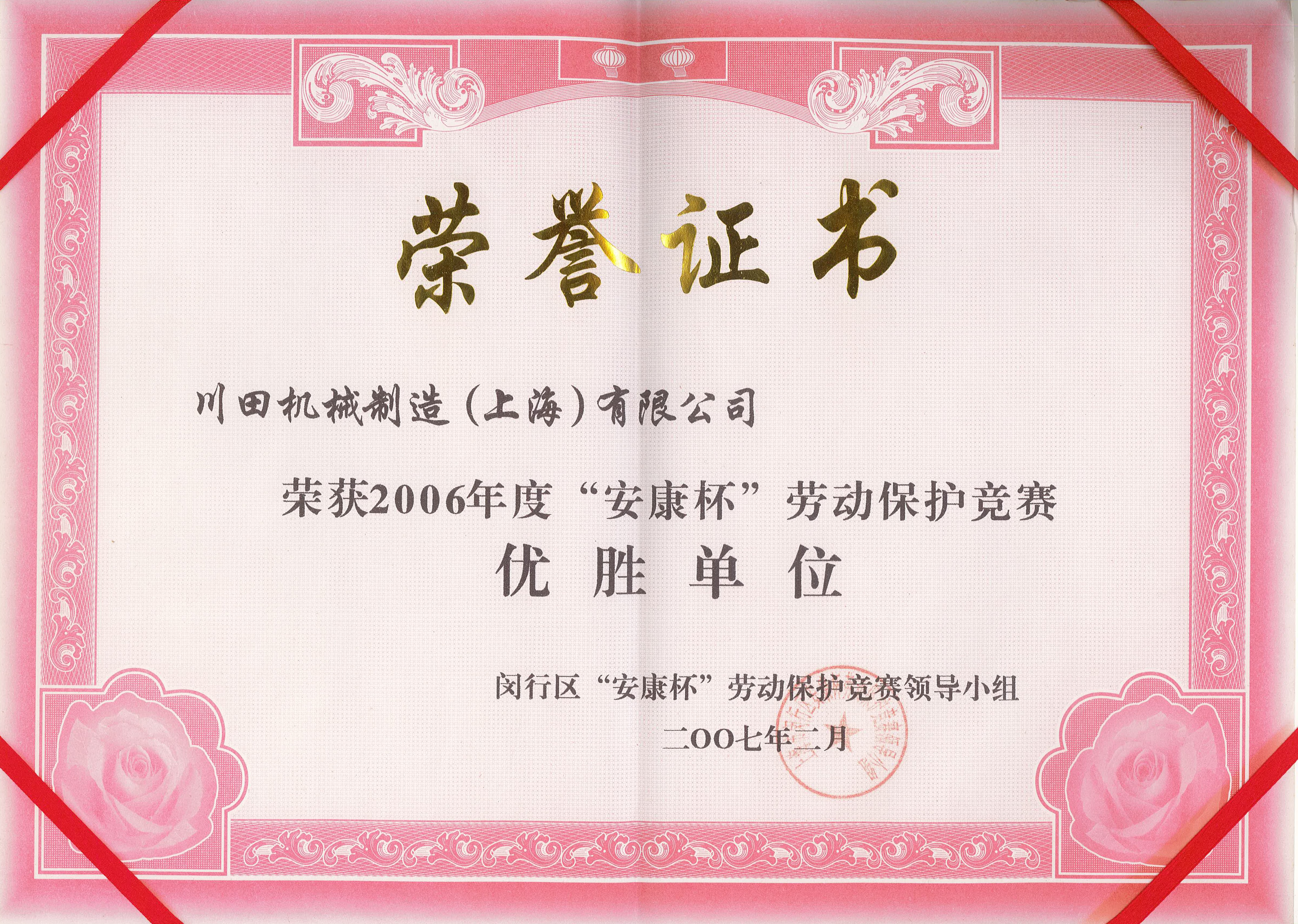 2006年度閔行區(qū)労働保護(hù)競(jìng)技會(huì)優(yōu)勝賞