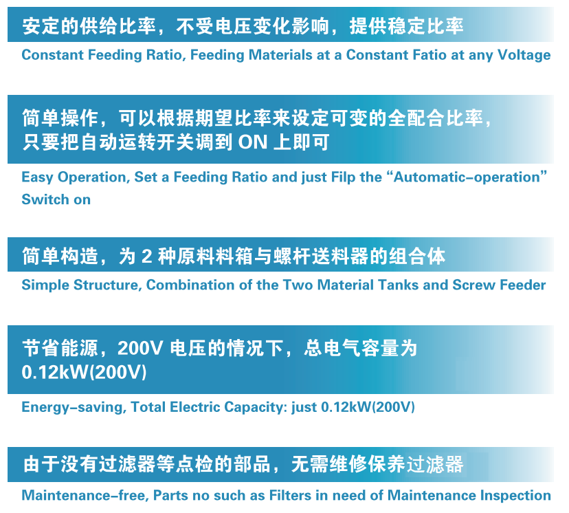 經(jīng)濟(jì)型容量計(jì)量機(jī)川田的混合料箱能以給2種材料(主材與粉碎材)提供各種各樣的安定混合比率,是經(jīng)濟(jì)型的機(jī)種